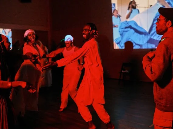 Debuting this October at Taller Puertorriqueño, The Land Alchemists is an immersive performance ritual served as a fundraiser for the Panzi Foundation of the Congo and Camp Breakers of Gaza, Palestine. It followed the story of Sunny, a gender queer farm manager laid off for their political work on the Congo and Palestine. Sunny is remembering who they are in collective libration through dance and complicated ancestral veneration. With the help of their Shadow and Spirit, and the audience, they unearth the roots that bind the spiritual and the political. Collectively, audiences and cast/crew were able to practice envisioning and embodying a healed and liberated future through rituals of release, a foot soak ceremony, and somatic movement. As a cultural organizing project, The Land Alchemists was made possible by the visions and voices of Philly organizers, farmers, and dancers, an award from Independence Public Media Foundation, fiscal sponsor Black Star Projects, and the Open Kitchen Sculpture Garden Artist Residency.